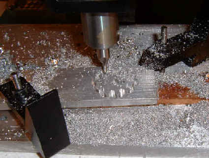 With great care and a quick practice run, I milled the first hole recess. Good thing to as I was not properly setup for the first one and all the work so far would have been for naught if I blindly let the mill do it's thing. This will be the most time consuming piece as any mis-steps on the face of it will turn it back into scrap metal. ( I do have a contingency plan in mind though - larger diameter shaft bases.) |