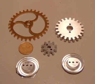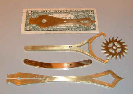 "Junk Yard Cogs" refers to my shopping habits. Almost 100% of the parts below are made from junk yard scrap. I found these plans on the internet. It's a skeleton clock and was actually designed to be made of wood. Everything so far is brass and aluminum. The thick parts being aluminum and the thin stuff in brass. I hope my efforts will do justice to this beautiful design. Making this clock takes a huge amount of time. For example, a 3'" x .250" gear takes about 5 hours to make. Between fine tuning the DXF drawing and setting the cut path in the CAM software, and then the actual cutting and finishing, it's a very long process. Starting this from scratch, without a drawing or CAD file would be a career in itself I'm sure. Gary deserves a great deal of thanks for posting his plans in DXF
