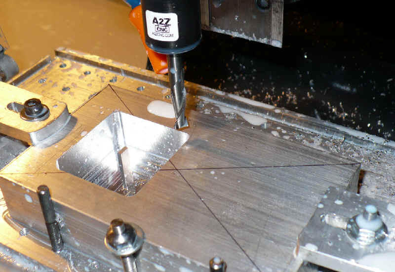 The base is actually a refugee from a scrap yard. I found a piece of 1/2" aluminum plate a bit over 30" wide. Since the plate is 29" long and way too big for my little Sherline mill, I had the local water jet cutter whip it into shape for me (and a spare just in case). He also pierced the hole locations. $60 and worth every penny. |