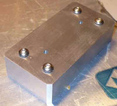 Every now & then something doesn't go quite right. I drilled a .375" shaft hole a wee bit off center. The only solution seemed to be to open up the hole and put in a separate piece to support the shaft. But it had to look like I did it on purpose. Which of course... I did. So the .375" hole was opened up to .500" and two #10 machine screw holes were drilled on either side. |