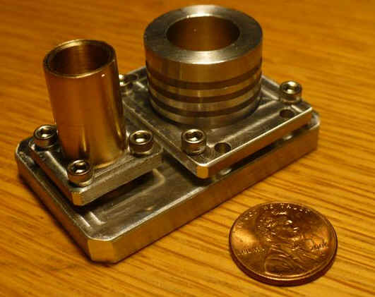 The diameter of the power cylinder base would have been way too big to scale it 2:1 and I didn't have a piece of brass that large. So, the base will be just 1/4" in diameter larger and it'll be held in place by this retainer. Here, it's still on the mill | |
